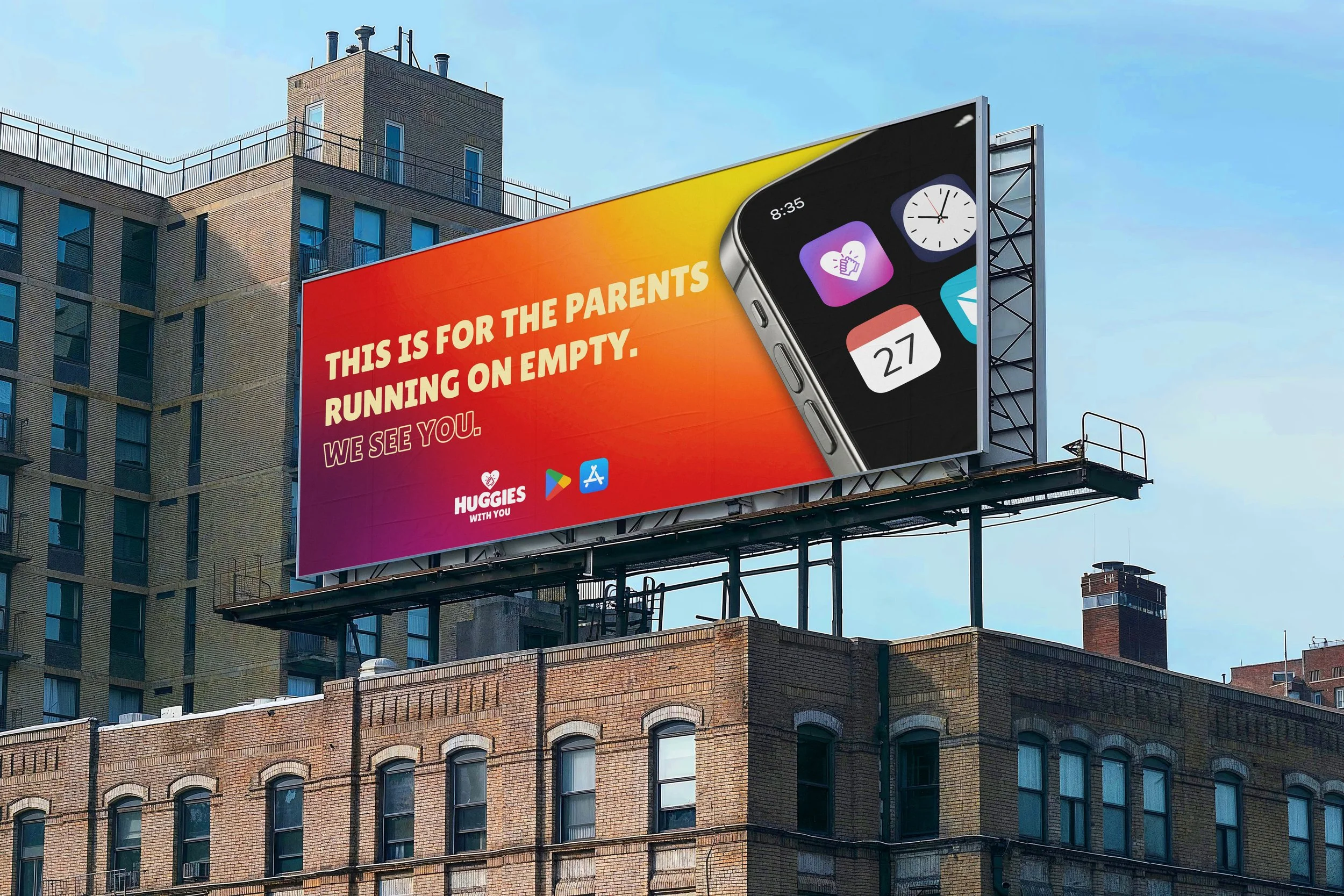 Huggies With You is a campaign concept promoting a companion app designed to support parents through the emotional realities of early parenthood. Through thoughtful messaging, approachable visuals, and emotionally driven campaign materials, the project focuses on creating a comforting and supportive brand experience across digital and environmental touchpoints.